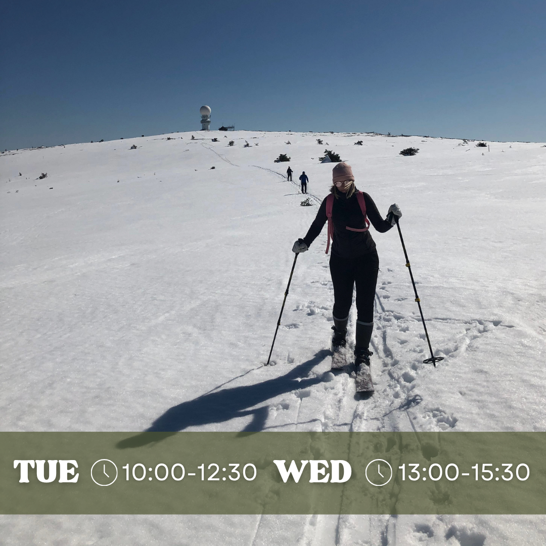 Walking in the snow in wool socks? Yes, you read that right. On this safari, we leave our shoes at the cloakroom and set out together to give our feet some well-deserved care — wool sock walking strengthens the muscles in your feet. Wool socks, a quiet forest trail, and shared wonder. This is the perfect mini getaway for your mind.
